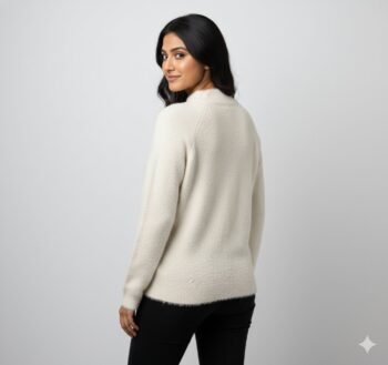 Cloud-Soft Fuzzy Knit Mock Neck Sweater.